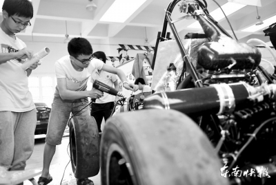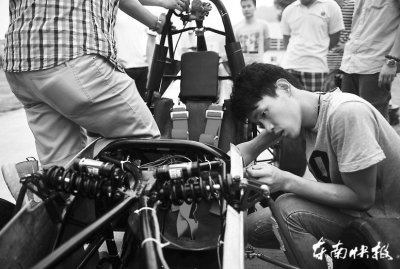 好在,历时半年的努力没有白费。李玮说,他对团队研制的赛车十分自信,通过与去年汽车大赛总冠军厦门理工大学车队的交流,老师的指点迷津,还有队员们的默契配合和努力,他们的赛车已经做到别的赛车所难以达到的轻量化目标。另外,独特的车壳设计,特殊材料的运用,这些都让他们信心十足。