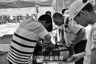 福州晚报讯 昨日,福建工程学院机械与汽车工程学院的50多名大学生志愿者们在南湖社区为居民义务维修电脑。这个活动将持续三天,同学们还自费购买水果、牛奶和营养品,送给社区多位老人。