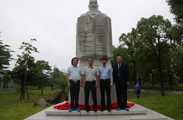 随后,校党委副书记詹松青与陈文荣会长、蒋惠民先生、王国辉先生共同为雕像揭幕,随着大红幕布缓缓滑落,一尊由一块完整花岗岩设计雕刻而成,高3.3米,总重量达14吨的孔子雕像展现在众人眼前,参加仪式的全体人员向孔子圣像行鞠躬礼,詹松青副书记向捐赠者蒋惠民先生、设计者王国辉先生颁发了捐赠证书。