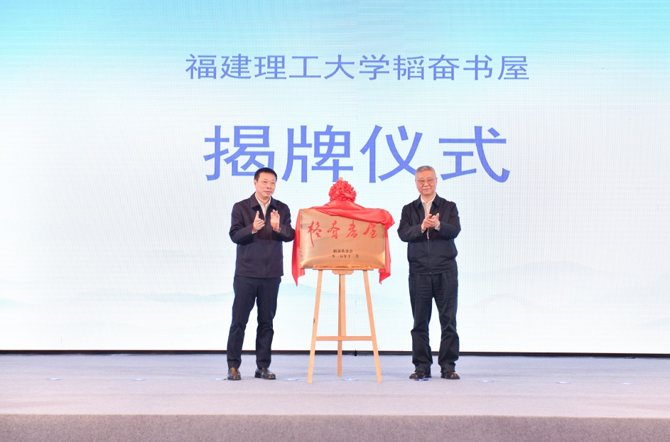 福建理工大学党委书记李绚与韬奋基金会理事长刘伯根为韬奋书屋揭牌