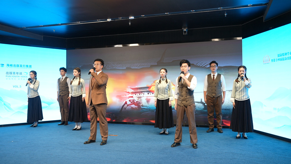 在平行论坛四“弘文传道:传承韬奋精神的出版青年实践”上,来自福建理工大学、福建新华发行集团等单位的4位青年代表结合自身实践作了分享,福建理工大学“声动苍霞”诵读艺术团带来了原创诗文朗诵《吾党的光荣》,生动展现了韬奋精神的新时代传承。