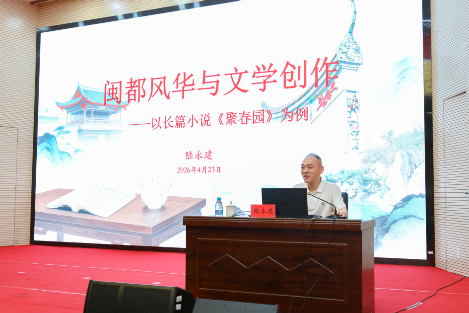 开幕式后,陆永建受邀作客苍霞讲坛,以《闽都风华与文学创作——以长篇小说〈聚春园〉为例》为主题与师生进行分享交流。